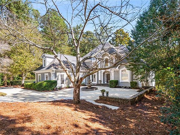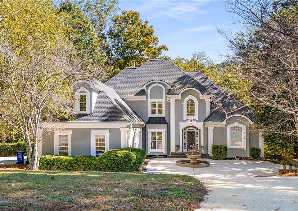 European facade welcomes you to your new home.  Set on a cul de sac with a circular drive and front parking, this home invites you to explore inside.  Enter to a two story foyer and open living areas with a wall of tall windows at the back. The windows and deck over look a part of Little Stone Mountain Creek.  To the right is an amazing primary suite.  The bedroom area has another wall of windows with a fabulous view.  There is also a walk out to the deck.  In the suite is an office with built-ins, a large walk-in closets and an ensuite bath that has been fully renovated with a glassed shower, large soaking tub, private water closet and large double vanity with amazing mirrors and mood lighting at the window over the tub.  Walk back into the foyer and you are in the two story open great room with a fireplace and built-ins plus an open stairway to the upper level.  Adjacent is an open dining room.  In the hall leading to the kitchen is a half bath and access to the lower level.  The kitchen has also been renovated with new appliances and an island.  There is a large casual dining area set in a bay with windows around and open to the keeping room with a fireplace and windows on three sides.  The kitchen has two walk-in pantries and a very generous laundry room with folding area that can also serve as a prep area for entertaining.  A three car garage is just off the kitchen for easy access.  Upstairs are three large bedrooms and two baths (one fully renovated).  Access the walk-in attic and discover the surprise of additional attic space up a few stairs.  The lower level is unfinished and huge with ceilings estimated to be 12 ft.  There are two walkouts to the back yard.  A basketball court is painted on the floor for those who want to play.  There are several framed areas and a roughed in bathroom.  The back yard gently slopes from the house to the stream and beyond with a side yard fenced.  Close to Smoke Rise Country Club, nearby shopping and dining.  Stunning statement home that you will be proud to call your own.