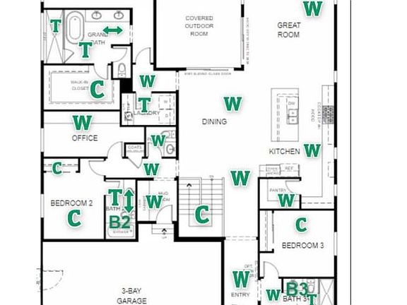 Plan 1 at Sugar Hills at RainDance by Trumark Homes features an inviting porch with two secondary bedrooms and a shared bathroom off the front of the home. The expansive single-story home offers 2,461 Sq. Ft. of living space with four bedrooms and three and a half baths. Past the entrance hall is the gourmet kitchen, featuring a spacious walk-in pantry and a center preparation island, which overlooks the dining and great rooms, complete with a modern gas fireplace. The kitchen includes 42" deluxe white cabinetry, Quartz countertops with tile backsplash, stainless steel appliance package with 5-burner gas cooktop, convection oven, built-in microwave, and dishwasher. Off the dining area, you'll find an in-home office space and additional secondary bedroom with an ensuite bath. The expansive primary suite offers a contemporary, spa-like bathroom with dual sinks, walk-in shower, and freestanding tub. This bathroom is complete with a spacious walk-in closet. This home also comes with extensive engineer wood flooring throughout entry, kitchen, great room, dining room and office, and features spacious 10-foot ceilings on the main floor and 9' on the upper floor and basement, tankless water heater, AC, insulated steel garage door, and much more! Neighborhood amenities of walking trails, orchards, non-potable water and trash, are included in your metro district fees. Membership to the Raindance pool is optional and currently $499/year; there are also other membership options combining amenities in Raindance and nearby Water Valley - "WaterDance"!