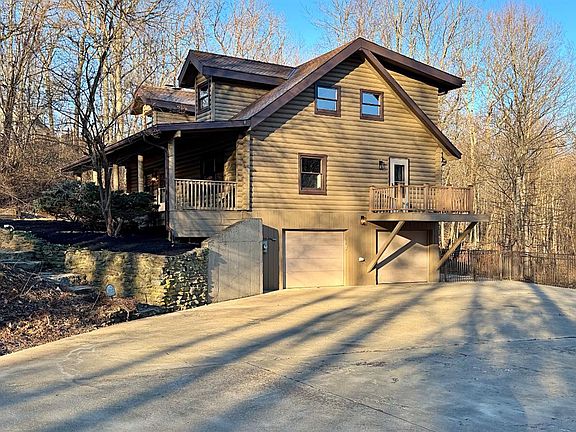 Welcome to this beautifully maintained log home that is nested on 5 acres. Step onto the inviting covered front porch and enjoy the quiet moments on the porch swing before entering the open-concept living space, highlighted by stone fireplace, tall ceilings, new kitchen with new SS appliances. This home offers 3 bedrooms, 2 full baths, with a finished basement that provides the perfect family room or recreation space. Step outside to appreciate the extensive concrete work and soak in the peaceful sounds of the country- a perfect setting for relaxation and entertaining. This beautiful home is ready for its new family to move right in. You don't want to miss this opportunity.