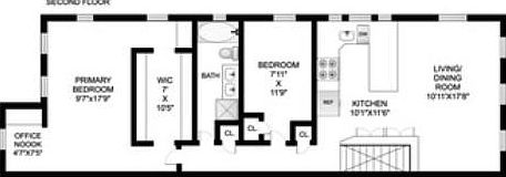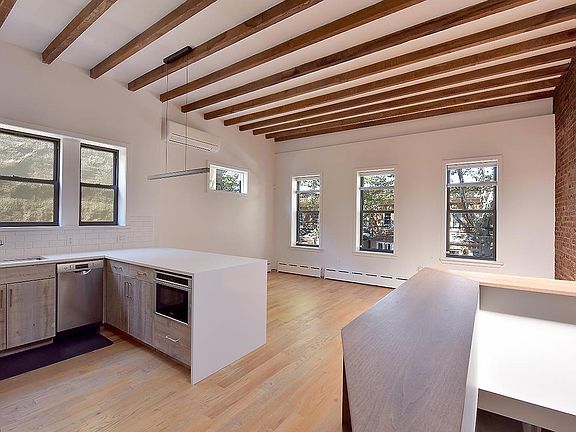 This charming 2Br was fully gut renovated. Home features include luxury architectural upgrades w/ soaring beamed ceilings, exposed brick walls, a large skylight, a sunny chef's kitchen with reclaimed barn wood cabinetry and a Caesar stone waterfall island, split unit Mitsubishi AC in every room, three sunny exposures, the 2 bedrooms share a huge windowed custom built walk-in closet with a vanity, hardwood floors throughout, built-in credenza for extra storage, a spa-like marble 4 fixture bathroom and an two additional windowed home office alcoves.