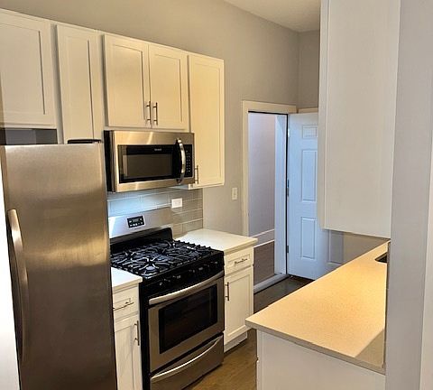 Come check out this gorgeously renovated 2 bed, 1 bath in the heart of Pilsen! The kitchen features white shaker cabinets, quartz countertops, backsplash, and stainless steel appliances. The bathroom features white subway tile surround and a white shaker vanity with stone countertop. Other features include hardwood flooring throughout, high ceilings, and central heat/ac. Common Laundry in the basement of 1722. Located in Pilsen just a short walk from all the shopping, restaurants, and bars on 18th street. Only a few blocks from the 18th street pink line. Steps from Harrison Park where you can enjoy local green space. Several nearby grocery options including Cermak Fresh Market, Aldi, and Costco. $49.50/mo utility fee, which includes Wi-Fi, water, trash and sewage. Parking available for additional $155/mo.