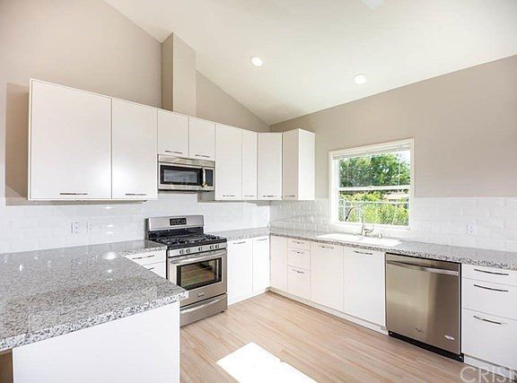 Brand new construction in prime Granada Hills neighborhood! One of two custom homes on one large lot each with their own separate address, private entrance and parking. Be the first to live in one of these custom homes completely rebuilt from the ground up.Open concept design with brand new kitchen, adjoining living room & new tiled floors throughout. Large chefs kitchen with granite counter tops, tiled back splash, large granite breakfast bar, all new appliances, and sliding door with access to private front yard. Additional features include: Cathedral ceilings, LED lighting, fire sprinklers, new laminate flooring in both bedrooms, new dual paned windows, new central heating and air, new roof, all rooms wired for internet, and private laundry area with plenty of storage. Master bedroom with new wood laminate floor, tiled shower with new wood vanity.Alley access to your gated rear yard with single carport & room for a second vehicle, patio area & drought tolerate landscaping with drip irrigation system. Walking distance to Granada Hills Charter High School, great shopping, theaters & gourmet restaurants.