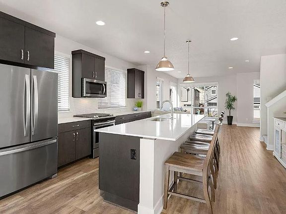 Almost BRAND NEW! End-unit townhome! Fully loaded with custom updates including built-in entry bench w/ wainscot, hardwood stairs, built-in garage shelving. Features expansive windows, open floorplan, large kitchen island, refrigerator, washer dryer, oversized garage + driveway, electric car charger, ducted heating/cooling, soft-close cabinets & drawers, quartz & more! Close to major employers + Mountainside High school + Progress ridge Town square. **Furniture is for rendering purpose only No smoking allowed Only people who have signed the lease (and their minor children) can legally live on the property. Keep the premises clean Repair any damage caused by neglect or abuse Excessive noise Large parties or pool parties Drug dealing Underage drinking