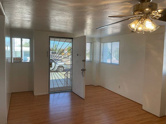 Bell Casas 55+ Community!! Spacious and well-cared for Mobile Home Community. Large lots with lots of space between homes. 2 bedrooms, 2 baths plus DEN with separate entrance. Vinyl flooring and carpet. Hall bath has large step-in shower. Big kitchen/dining/family room plus living room. Indoor W/D included in large laundry/utility room PLUS indoor workshop. 2 large parking area and large covered area. Must see