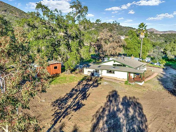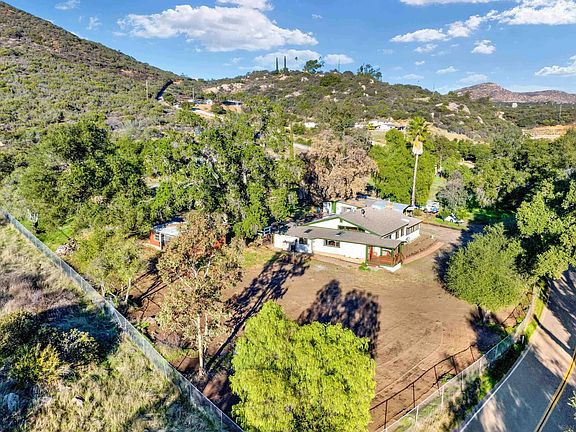 Enjoy country living on this 3.65 acre property with a guest house that backs up to nature. Scenic views in every direction, will set the tone for warm holidays and peaceful summers. A log cabin feel inside this 2 bed, 2 bath, cozy home and 1BD guest house. Original rock fireplace built in the 50’s, open wood beams, and Spanish tile flooring. The open floor plan and 8 skylights, are perfect for family gatherings, horse corrals, horse pasture, chicken coop, wood burning stove in living room, 200' from school bus stop, horse trails right outside property, 15 minutes to Rancho San Diego, 3000 gal holding tank. Separate fenced in yard.
