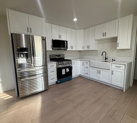 Newly remodeled attached ADU with 1 bedroom and 1 bathroom. The kitchen has a new stainless steel refrigerator/freezer, stove, and microwave. The wide porcelain sink has a garbage disposal. The kitchen opens to the living room. The bathroom has an open shower, and the bedroom is spacious with a large closet with sliding glass doors. It comes with a new stackable washer and dryer and a split-system air conditioning unit. One parking space in the driveway. Located in a peaceful and safe neighborhood close to the 210 freeway, near shopping, dining, parks, and an AMC theater.