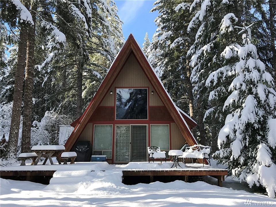 Great location! Classic A-Frame cabin situated along the riverside trail in Crystal River Ranch. 20 minutes to Crystal Mtn Resort. Vaulted wood-lined ceiling in great room w/ a wall of windows offering White River views. Vintage kitchen. One main floor bdrm & full bath. Large lofted bdrm. Wood-burning fireplace insert, insulated metal roof, new vinyl windows & doors. Storage shed. 17,260 SF lot. Community caretaker, rec room, ball fields, play area, trails, & more! Recreation just out the door.