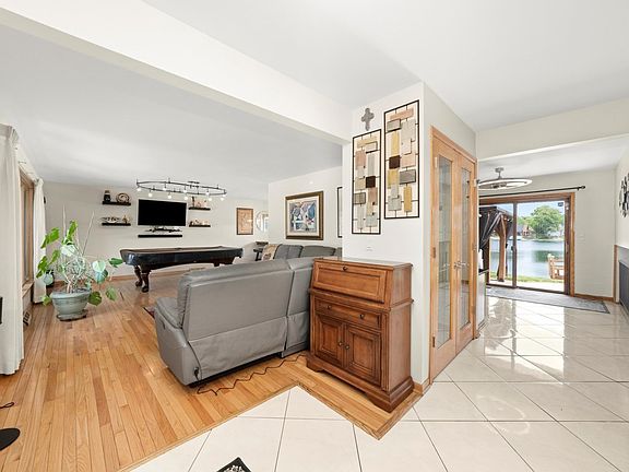 Updated to Impress! Designed to Welcome You to Elegant Lakefront Escape in this 4-5 bedroom, 3 full bath split level home in move-in condition, perfectly situated on Thorn Lake! Enjoy year-round lakefront living-swim, fish (bass, bluegill, catfish, and more), ice skating, right from your backyard. Professionally landscaped with a newer private pier and six chairs, perfect for enjoying sunsets by the water. Step inside to find an updated eat-in kitchen featuring granite countertops, porcelain flooring, and all stainless steel appliances. All three bathrooms have been tastefully renovated. The spacious family room offers a wood-burning fireplace, and solid hardwood flooring. The large living and dining rooms also feature solid hardwood floors and are ideal for entertaining. The dining room and kitchen offer a wonderful lake view each day. Wake up to stunning lake views from both the primary and second bedrooms. This is a smart home equipped with a security system and cameras for added peace of mind. The new windows throughout come with a transferable lifetime warranty, and the newer roof includes a 30-year warranty. An in-ground sprinkler system helps maintain the beautifully professionally manicured lawn. The oversized 2.5-car attached garage is a dream workspace-complete with an air compressor, heater, automatic garage door opener, and storage. Don't miss this rare opportunity to own a lakeside retreat with high-end updates and breathtaking views-schedule your private showing today!