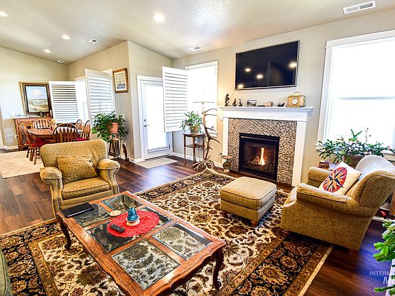 Just what you have been looking for! Stunning one level home with split bedroom floor plan. All new top of the line Cafe kitchen appliances, Electrolux washer and dryer. Open concept living room, dining room and kitchen with island and breakfast bar. This home is like new inside and out. Two car garage plus 16 x 46 RV garage with 14' door and new mini split. There is a multi purpose room that is off the garage with a new mini split. Low maintenance yard, unobstructed view, fire pit and storage shed. Extra parking on West side behind fence. Seller has recently completed just over $70,000 in upgrades (see associated docs) Built by Hayden Homes.