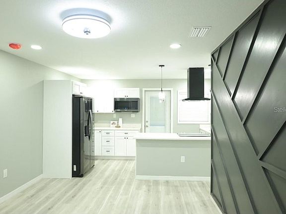 Welcome Home to Your Lakeland Oasis! This newly remodeled 3-bedroom, 1-bathroom concrete block home offers a perfect blend of modern style and everyday comfort in a quiet Lakeland community. Move-in ready and thoughtfully upgraded, this property is ideal for first-time buyers, families, or anyone seeking a low-maintenance home with contemporary finishes. Inside, you’ll find a bright and open living space with custom white shaker kitchen cabinets, quartz countertops, pendant lighting, and a sleek range hood. The kitchen is fully equipped with Samsung fingerprint-resistant black appliances, creating both function and style. The bathroom has been beautifully updated with subway tile, quartz vanity, and modern fixtures, while luxury vinyl flooring runs throughout the home for a clean, cohesive look. Additional features include: • New shingle roof for years of peace of mind • Central air & heat for year-round comfort • Dedicated laundry room with washer & dryer included • Spacious fenced-in backyard, perfect for outdoor living, pets, or entertaining Centrally located in the heart of Lakeland, this home provides easy access to shopping, dining, schools, and major highways—just 40 minutes to Tampa and 50 minutes to Orlando. Best of all, this property comes with NO HOA fees and NO CDD costs, giving you full ownership freedom without added expenses. Don’t miss your chance to call this stunning Lakeland home your own—schedule your private showing today!