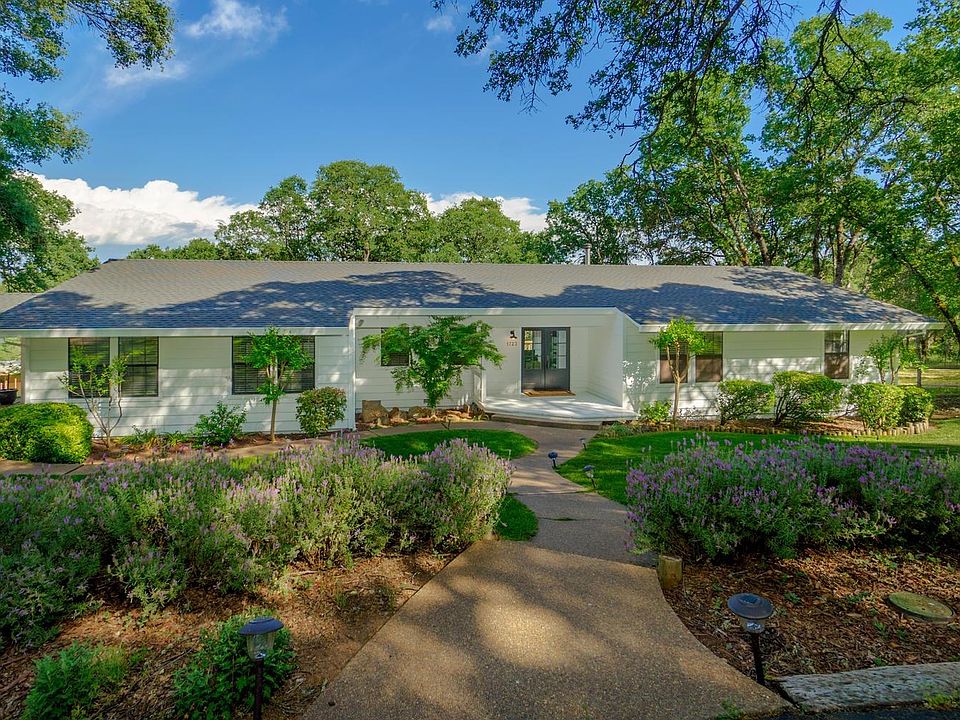Beautiful single story custom country home on 5 oak studded acres. The kitchen and living spaces have been professionally designed by award winning local designer (Design Shop Interiors) and featured in national design publication. The remodeled kitchen features leathered granite counters, custom inset cabinetry and new appliances including an induction cooktop and pot filler. Modern farmhouse inspired touches include shiplap, cement tile, wide plank wood flooring and custom lighting fixtures throughout. Brand new roof and gutters. Fenced and cross fenced horse property features a lighted arena, 3 stall barn including tack and hay rooms, and multiple pastures. Plenty of room for all your toys! Bonus room space under the deck is in addition to the listed square footage. Zoned for Oakridge High School. Welcome home!