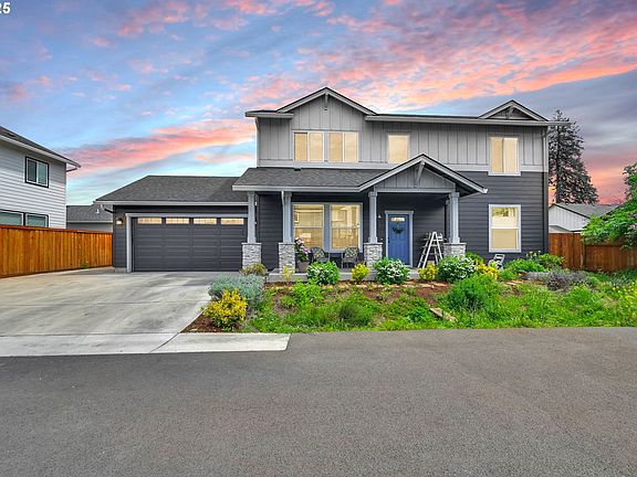 PRIME WEST SPRINGFIELD NEIGHBORHOOD! Located privately off the street, this move-in-ready, newer construction home offers the perfect blend of style and convenience. Just a SHORT WALK TO RIVERFRONT TRAIL system, community parks, and Autzen Stadium, the area is ideal for both outdoor enthusiasts and sports fans. A GATED ENTRY leads to a private driveway with RV PARKING. Step inside to a spacious, OPEN-CONCEPT floor plan featuring lofty 9-FOOT CEILINGS and elegant 8-foot doors throughout the main level. The kitchen is a showstopper with sleek QUARTZ countertops, a stylish tile backsplash, GAS COOKING, and a central island that serves as both prep space and breakfast bar. The adjacent closet makes an excellent pantry for additional storage. Pleasing floor plan with MAIN LEVEL PRIMARY SUITE which offers a light-filled retreat with a spacious ensuite that boasts dual vanities, a tiled walk-in shower, and a large walk-in closet. Upstairs you'll find three more bedrooms, a full bathroom, a second living area, and a dedicated laundry room with tile flooring. Enjoy low-maintenance outdoor living with a quaint, fully fenced backyard & covered patio. The front portion of the lot adds flexibility for additional parking, gardening, or recreation equipment—perfect for an active lifestyle. With EASY ACCESS TO FREEWAY and just minutes from shopping, dining, and entertainment, this home offers modern living in a sought-after West Springfield neighborhood.