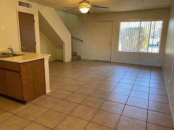 2 story with tile downstairs, carpet upstairs. Each bedroom has its own balcony. Fenced backyard, storage with washer and dryer hookup. Stove and refrigerator provided. Water, garbage and sewer included with rent. Cable TV/internet available. $950 first month rent plus $950 deposit ($200 is non refundable) due at signing of lease