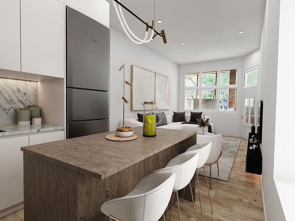 A 3-Story End-Of-Row Brick Townhouse in the "Upper Fells Point" Neighborhood of Baltimore City. The property is a two-unit, zoned R-8; and is in need of renovation and updating. Main level: You enter the unit from the street level. There is one big open room that includes a kitchen, and a full bath. You have access to the lower level. Upper level 1: Includes 2 bedrooms, a kitchen, and a full bath. Access the door on S. Regester St. and go up the stairs. Upper level 2: Continue up the stairs to this level. Includes a long hallway with 5 rooms. Lower level: unfinished and includes 2 forced hot air furnaces & a gas hot water heater. There are 2 gas meters and 2 electric meters. You can access the basement from the main level. There are exterior fire escapes from both upper levels. Being Sold As-Is, Where-Is. Can also do COMMERCIAL on the Ground level Unit if desired.