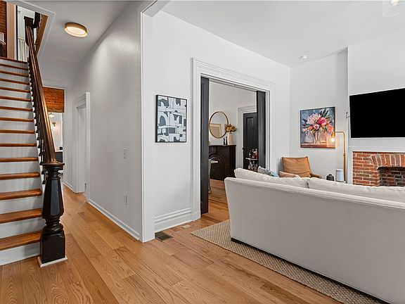 Behind a classic brick façade, this ~1,800 SF home blends high ceilings, new wood floors, and exposed-brick accents for a modern yet timeless feel. The main level offers a wide living room, dining area, and a kitchen that cooks—generous prep space, stainless appliances (with wine fridge), and easy flow to a low-maintenance deck. Upstairs, the primary suite features an exposed-beam ceiling and stylish bath with pocket doors. A second bedroom and large flex space (easily converted into a 3rd bedroom—see floor plan) sit nearby, along with another full bath and laundry. Location perks: steps to Ghost & Redhawk Coffee, Trace Brewery, walk to PPG Arena, Steps to Mercy, Duquesne, Downtown, and major highways.