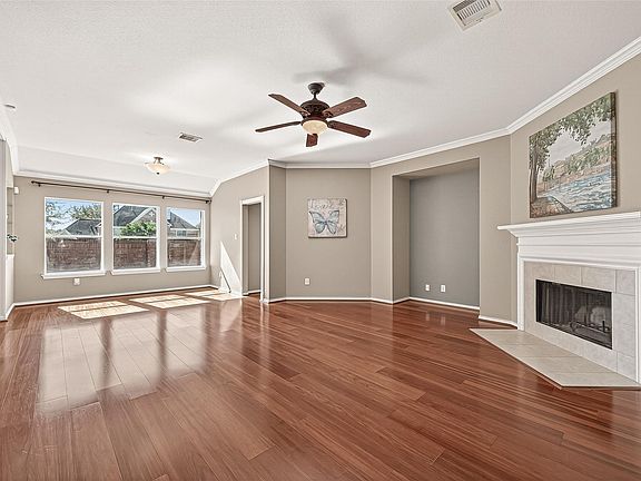 Welcome home to this charming all brick one story zoned to FBISD. Enjoy the open concept floorplan with multiple living areas including a family room, dining room and a study too! ROOF replaced in April 2025. Inside this beautiful home you will find crown molding, art niches and exquisite wood flooring. The primary suite is a must see with its huge bedroom and a bathroom with a large garden tub and separate shower plus a large walk-in closet. The Family Room is grand with a fireplace and two sitting areas. The kitchen is truly a culinary dream with an abundance of counter and cabinet space, stainless steel appliances and the refrigerator is included too! The secondary bedrooms are also generous in size and share a beautifully updated bathroom with a walk-in shower and granite counters. If you are looking for a one story home in a fabulous community, this is the one for you! Located close to area shopping and restaurants with easy access to grand Parkway.