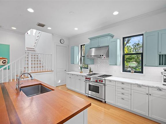 The best of both worlds awaits in historic Laurel Park: a walkable downtown lifestyle paired with the privacy and comfort of a single-family home. 1723 Oak Street is a rare offering: an elevated, concrete-block residence with a character-rich Spanish Colonial exterior and nearly 2,900 square feet of light-filled living space. From the picture-perfect front porch, you’re welcomed into the main level, where high ceilings and hurricane-rated French doors and windows flood every room with natural light. The kitchen is a true showpiece, blending upscale finishes with coastal-inspired design. A 36” Wolf range and built-in refrigerator complement the Calacatta marble countertops and exotic wood topped island, while an expansive walk-in pantry provides coveted storage. A beverage refrigerator on the island makes entertaining effortless. The semi-open floor plan flows seamlessly between the dining and living areas, creating the perfect environment for gathering in style. A flexible den, ideal as a study, playroom, or media space, is enclosed by French doors. Upstairs, the spacious primary suite offers a private balcony, dual walk-in closets, and a spa-like bath with marble countertops, a soaking tub, and an oversized walk-in shower. Two additional bedrooms share a beautifully appointed full bath and a balcony overlooking the property. The laundry is conveniently located on the same level as the bedrooms. Outside, discover an unexpected oasis in the heart of downtown: a heated PebbleTec plunge pool, brick paver patio, mature tropical landscaping, and lush turf that creates a serene, low-maintenance retreat. A detached structure at the rear of the property provides exceptional flexibility. The upper level hosts a self-sufficient guest suite complete with kitchen, bath, and built-in queen Murphy bed. Below, a two-car garage with a sleek impact-rated glass door not only offers prized garage space but has been finished and air conditioned to function as a home office, fitness studio, or creative flex space (this bonus space is not included in square footage). The property is fully fenced and includes off-street parking in addition to the garage. Located in one of Sarasota’s most desirable neighborhoods, you’ll enjoy dozens of restaurants, shops, and cultural venues just steps from your door, along with easy access to the waterfront, farmers markets, and year-round festivals and shows. Few homes combine modern quality, neighborhood charm, and exceptional indoor–outdoor living quite like this one. Don’t miss this rare opportunity to experience the very best of Laurel Park.
