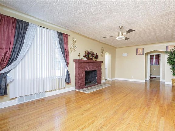 Welcome to this exceptionally updated 1.5 story brick/stone beauty. Enter through the round top door into the large living room with fireplace an curved plaster crown molding, tin ceiling and refinished hardwood floors. The attached dining room has atrium doors leading to the covered side porch. Then the kitchen with new stainless steel appliances, new cabinets and countertops. Off the kitchen is a small porch and the door to the upstairs primary bedroom with two closets and a large full bathroom with shower and new vanity and toilet. The main floor has two more good size bedrooms. The walk-up basement has a ton of storage space and possibilities. The level fenced backyard is a bonus. The circle drive in the front offers convenience and tons of parking.