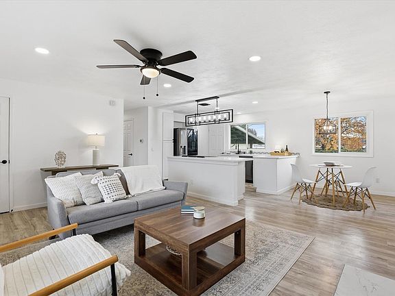 This Central Valley home pulls its weight with smart updates and space that actually works. New flooring, paint, appliances, counters, and a gas tile-faced fireplace give the main level a clean, modern feel. The kitchen’s island and informal dining area keep everything easy. Two bedrooms sit upstairs along with a refreshed tiled bath, while the primary suite stands out with a big footprint, walk-in closet, double sinks, a tiled triple-faucet shower, and a private toilet room. Downstairs adds two more egress bedrooms, a bathroom with shower, a huge storage-friendly laundry area, and a wood stove that cuts the winter chill. Outside, the covered deck is rebuilt with new materials, the concrete patio and covered area keep the yard functional year-round, and extra storage out back solves the gear problem. Set on a large lot and backed by solid mechanicals, this is a move-in-ready four-bed, two-bath home that makes daily life straightforward.