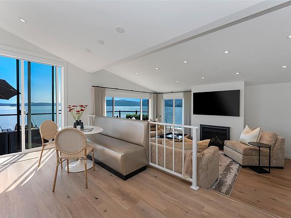 Waterfront cottageCommunal dockBeach accessExpansive ocean view decksGas fireplaceExpansive deckPrimary bdrm
