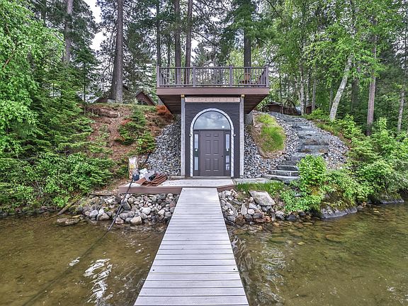 Here is a classic case of "Empty Nesters". Owners are downsizing as the kids have all moved out and on with their lives. They have been too busy to enjoy this Scandinavian log home featuring 4 bedrooms and 3 baths, with a separate 1 bedroom, 1.5 bath guest house with a loft. The property includes an oversized 6 car garage plus a one car garage, perfect for storing all your outdoor toys. Inside, you'll find a beautiful fieldstone fireplace, open floor plan, and lakeside windows that offer breathtaking views of those sunsets. The custom designed kitchen is perfect for entertaining, and the large bedrooms provide plenty of space for family and guests. The guest house is less than 40' from the shore, providing easy access to the water. The master bedroom suite includes a 3/4 bath and walk-in closet, and outside, you'll find a hot tub, boathouse deck, and fire pit. Home is being re-stained this month, there is also a sitting deck on the new boathouse.