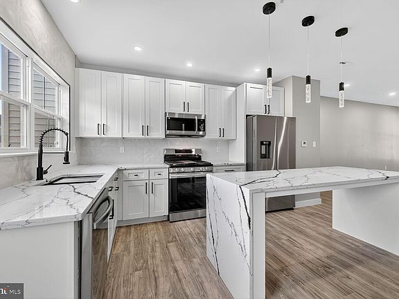 Beautifully renovated 3-bedroom, 3-bath interior townhome with a fully finished basement. The upper level features two spacious bedrooms, each with a private en-suite full bath, while the lower level offers another full bath and flexible living space perfect for entertainment or guests. The modern kitchen showcases a quartz waterfall island, stylish 3D tile backsplash, stainless steel appliances, and matte black fixtures. Enjoy wide-plank laminate flooring throughout and energy-efficient recessed LED lighting. Private rear carport provides convenient parking with direct entry into the kitchen. This home perfectly blends style, comfort, and functionality in a great DC location! Excellent curb appeal with a refreshed façade and new blue front door.