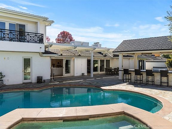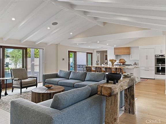 Extensively remodeled just a few years ago by Lulu Designs, this residence beautifully blends modern farmhouse charm with timeless traditional appeal in the heart of the Dover Shores area. Set on an expansive lot, it lives as a private sanctuary—where sunlight filters through lush landscaping and every space invites effortless indoor/outdoor living. A heated pool and spa, flourishing gardens, a generous play area, and a cozy fire pit create an atmosphere that feels both vibrant and serene. With solar panels and two Powerwall batteries, the home enjoys minimal electrical costs while maintaining year-round comfort. Inside, the home’s thoughtful renovation shines through every detail. High ceilings and abundant natural light highlight wide-plank wood floors, custom wainscoting, refined built-ins, and elegant stone and marble finishes. The flowing floor plan connects each room with intention—from the warm family room and formal dining room to the sophisticated living room and chef’s kitchen. Anchored by a grand island and separate bar, the kitchen also features a hidden dirty-kitchen pantry, offering both beauty and practicality for entertaining and everyday living. The main level is anchored by a luxurious primary wing, where a spa-influenced bath and spacious walk-in closet create a true retreat. Two additional bedrooms with en-suite baths, complemented by a full pool bath and a versatile poolside cabana that doubles as a playroom or bonus space. Upstairs, a private guest-style suite offers comfort and flexibility with its own full bath, office area, bar with wine refrigerator, and inviting lounge—or optional bedroom—perfect for guests or an elevated personal retreat. Every upgrade reflects thoughtful craftsmanship—from the new Hydrotap water system and two new AC units to the newer appliances and integrated security camera system. This is a home designed for beauty, comfort, and the seamless California coastal lifestyle.