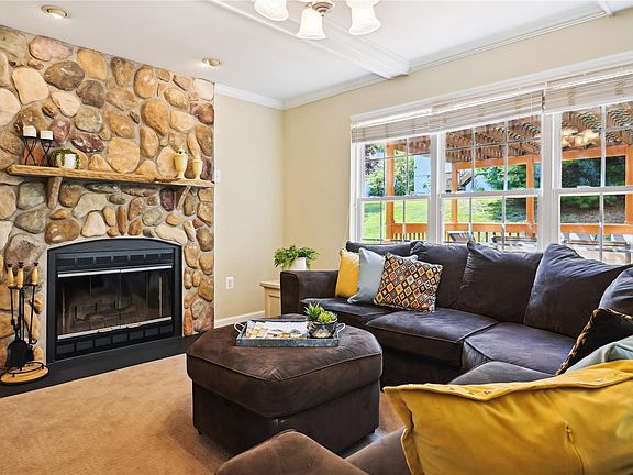 - Fireplace features: Glass Doors, Mantel(s), Stone, Wood Burning
