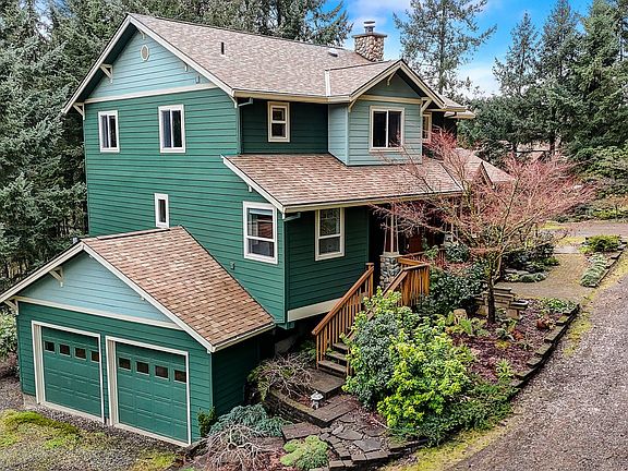 Wooded Oregon City Oasis!! This stunning custom built Craftsman home feels like you are miles away from everything, but is conveniently located within minutes to downtown OC, shopping, restaurants, schools and so much more. Over 5 serene treelined acres complete with a full sized detached garage/workshop with an abundance of additional storage, chicken coop, garden beds, covered sitting area and tranquil water fall. Expansive backyard with terraced areas and a small creek create an ideal setting! 5 Bedrooms, 4 Baths plus an Office with vaulted ceiling entryway, engineered hardwood floors and a central vacuum system throughout. Finished Lower level Family Room, 5th Bedroom and full Bath complete with separate entrance which could be a great option for multi generational living options. Large entertainers Kitchen with granite and formica counters, Cook Top Island, double oven, Large Pantry (pre-wired for storage freezer), and tons of cabinet and countertop space. Grand Great Room with oversized windows, beautiful reading nook and a River Rock wood burning fireplace. Double door spacious primary suite with private bath, clawfoot soaking tub with a spa like feel and walk in closet with built in storage shelves. Don't miss the oversized 2 car garage complete with workshop space and ample guest parking. So much more to list; don't miss this spectular home!!