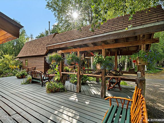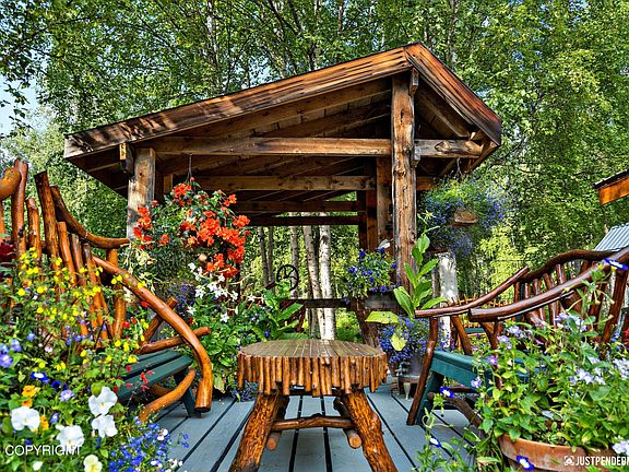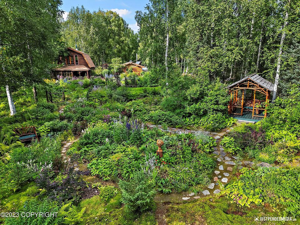 The world renown Coyote Gardens is FOR SALE! You know you want to own one of Alaska's most well known gardens and a sweet Alaskan log home on almost 5 acres of serene living. The gardens have been featured in multiple magazines around the world showing off the multitudes of beautiful Alaskan plants as well as willow furniture, decor & a Tea House created by the homeowners. With no CCR's,this home is the perfect place to create your own slice of heaven. The log home comes w/ a huge deck, multiple outbuildings including a detached barn/shop/living space that overlooks the beautiful gardens, a Tea House in the garden, a gazebo on the deck & various willow furnishings that could remain with the house if the right offer came along. Come see it today!
