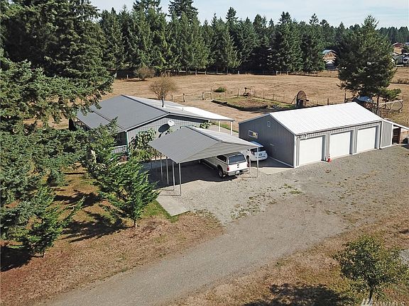 Rock solid home set in the middle of livestock friendly, fenced 6 acres. Upgrades include tiled kitchen countertops, efficient heatpump, longlife metal roof, durable laminate flooring, warm woodstove. Outstanding 3 bay workshop, shelving. Covered parking for 5 cars/toys. Level site has raised garden area, fruit trees, dog kennel and chicken pens. Bountiful supply of clear,cold, fresh water from the private well. Recent new pressure tank. Located near Littlerock rd just North of Rochester.