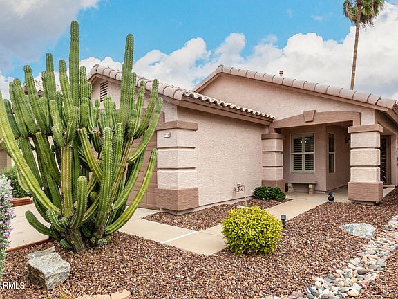Screened patioBright open layoutBreakfast barWood cabinetryPlantation shuttersDual closetsLow-maintenance desert landscape