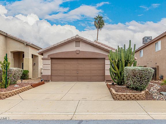 Charming single-level home in the desirable Lane at Bel Esprit neighborhood—ideal for first-time buyers or anyone looking to get into this prime location. Just minutes from Desert Ridge Marketplace, this 3-bed, 2-bath home offers a 2-car garage with storage and a low-maintenance desert landscape. Inside, enjoy vaulted ceilings, plantation shutters, and a bright, open layout. The kitchen features stainless steel appliances, wood cabinetry, and a breakfast bar. The primary suite includes backyard access, dual closets, and double sinks. A screened patio, hot tub, and multiple seating areas complete the private yard. Ready for your updates and personal touch!