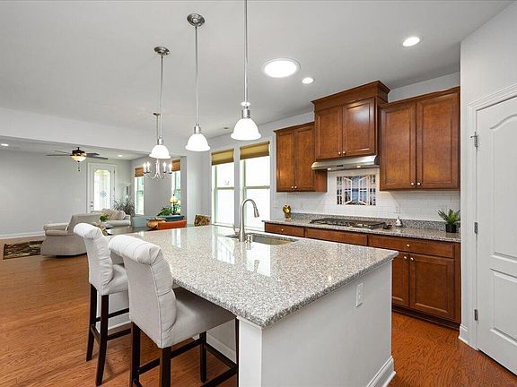 Welcome to this stunning single-level home in the highly desirable Jordan at Southpoint. This home boasts an exceptional open floorplan, adorned with elegant hardwood floors throughout. The chef's kitchen is a culinary delight, featuring granite countertops, stainless steel appliances, and a generous island perfect for entertaining. Enjoy abundant natural light courtesy of kitchen solar tubes. The owner's suite offers a private sanctuary with a flexible layout, including a sitting area ideal for an office or exercise space, two expansive walk-in closets, a double vanity, a walk-in shower, and a relaxing garden tub. Enhancing the living space is a charming four-season sunroom located off the living room. Additional amenities include custom cellular shades throughout the home, an efficient tankless water heater, and a convenient EV charger in the garage.This property offers endless possibilities and is ideally located just minutes from restaurants, shops, Research Triangle Park, Jordan Lake, and so much more!