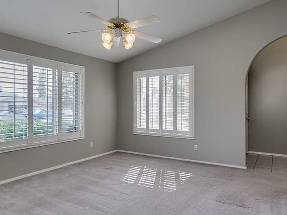 Charming single level home in Mesa featuring spacious kitchen with island, tile flooring, bay window in dinette area, plantation wood shutters, and fireplace in adjoining family room. New HVAC and North/South exposure reduce energy costs. Master bedroom exit to large 36'x12' covered patio. Plant lovers will enjoy sizeable garden, fruitful orange tree, and raised flowerbed. RV gate and cement pad. No HOA fees. Ideal location for exercise--wide bike lanes, walking distance to canals/dog park.