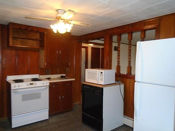 Ranch style home needs some exterior paint but is ready to live in. Has 2 BR's and large Den that could be a 3rd BR if needed. New roof in 2013. House is clean inside and includes updated working Refrigerator and Stove. Also Includes Microwave and portable dishwasher. Large Den has electric fireplace. Central AC and efficient HW baseboard heater works well. 2 small sheds in large yard. Some exterior painting and finish installation of new light fixtures to be done soon.