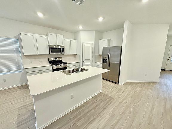 Step into luxury and be the first to call this stunning 5-bedroom, 3.5-bathroom home yours! With 2,950 square feet of thoughtfully designed living space on a spacious lot, this open-concept gem offers both style and functionality. The main home boasts white shaker cabinetry, quartz countertops, a large kitchen island, and 2 window blinds perfectly complementing the luxury vinyl plank flooring in the living areas and cozy carpet in the bedrooms and bonus room. The primary suite is conveniently located downstairs, featuring a spa-like bath with a garden tub and separate shower. Upstairs, you ll find three additional bedrooms and a full bath, plus a powder bath and extra storage under the stairs. A GEN-X suite with a private entrance makes this home truly unique! Ideal for in-laws, guests, or an older sibling, this self-contained 1-bedroom unit includes a living area, kitchenette with refrigerator, dishwasher, and microwave, a full bath, and stackable washer/dryer hookups. Enjoy modern conveniences like a tankless water heater, a spacious two-car garage, a long driveway, and an expansive backyard. Plus, the home comes move-in ready with a refrigerator, washer, and dryer included. Located just minutes from Highway 183, the new H-E-B, restaurants, and shopping, this home offers easy access to everything you need. Available now don t miss your chance to lease this spacious and versatile home!