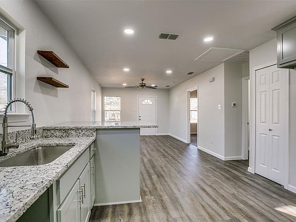This property has been taken to the studs and completely rebuilt. This property already had one of the best looking lots in all of Mesquite and now it has the better than new Home to match for the entire package. Completely open and designer renovated Kitchen and Living Space. Custom Cabinets, Granite and Wood like floors. New Windows, Doors and a completely remade Bathroom. Completely updated electrical with panel, 2020 Lennox HVAC system and high efficiency Water Heater. All walls newly insulated to code plus blown in attic insulation. All walls completely new sheetrock w tape bed & texture. All work fully permitted through the City of Mesquite. This property is truly a must see in person opportunity.