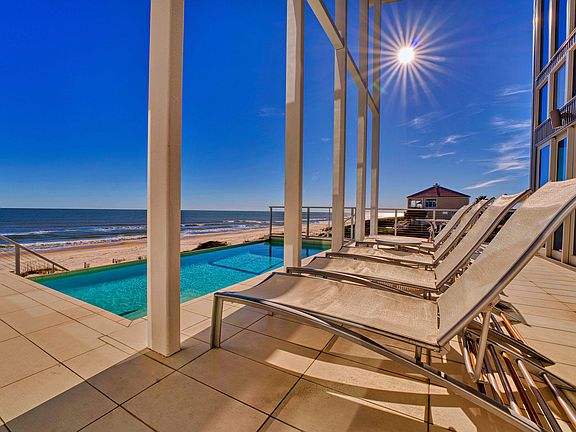 Welcome to Sugar Sands Sanctuary, an exquisite Gulf front legacy home nestled in the gated community of The Plantation on St. George Island. Designed by renowned architect Carey McWhorter, this contemporary masterpiece spans over 5,000 square feet and boasts 100 feet of stunning beachfront on the Gulf of Mexico.From the moment you arrive, you are greeted by covered concrete parking and a spacious, enclosed foyer with an elevator for convenience. The first floor features an open living/dining/kitchen area with soaring two-story ceilings and walls of glass that provide breathtaking Gulf views. The elegant and serene decor, combined with comfortable seating, a flat-screen TV with a home theater system, and direct deck access, creates the perfect atmosphere for