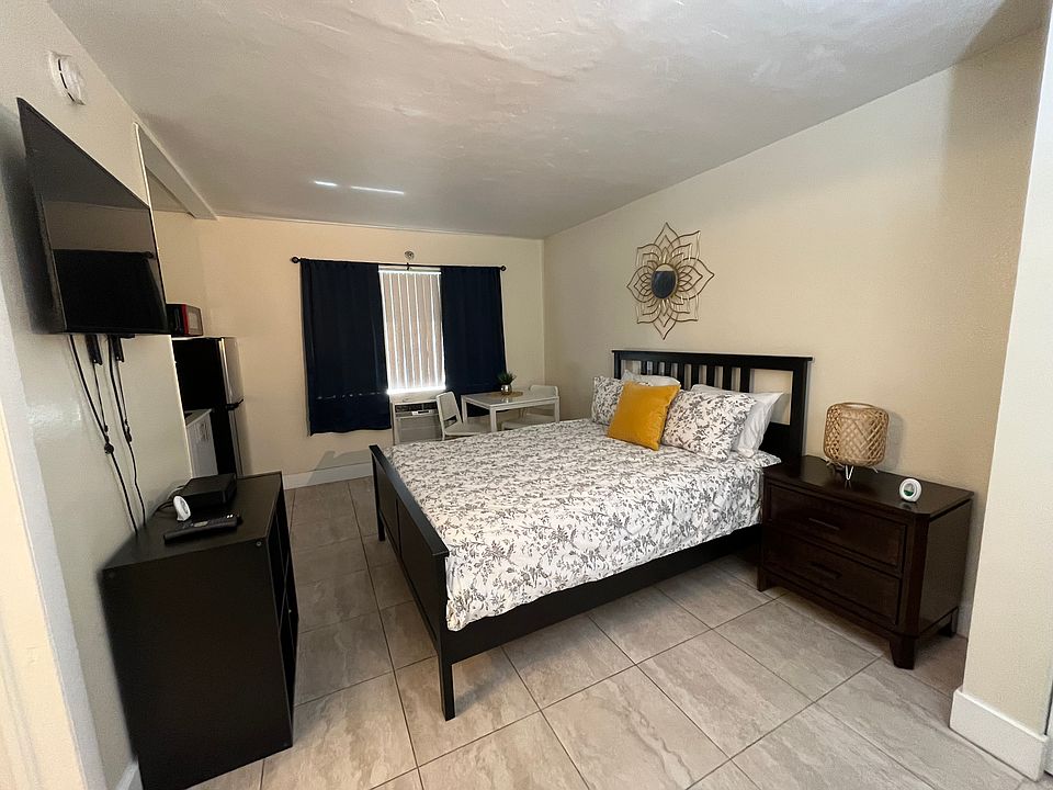 The unit has a single bed. Has its own bathroom and kitchenette. all utilities are included in the monthly rent.