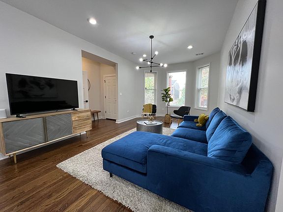 Gorgeous 3 Bed - 1 Bath Located minutes the 606/Bloomingdale Trail! Fully furnished in a 2 unit intimate building. What's your pleasure? Maybe you are in town for business, pleasure, or just traveling to get away. Feel the comforts of home in this beautiful, immaculately clean spacious 3 bedroom apartment. You'll have access to a well equipped kitchen that has everything you need in order to cook a fabulous dinner, including a dining table for 6. Avoid all the hassles of renting unfurnished by opting for our move-in ready, furnished apartments for flexible stays of a month, a few months or a year. Show up and start living from day one in Chicago with this cozy three-bedroom apartment. You'll love coming home to this thoughtfully furnished, beautifully designed, and fully-equipped home. Designed With You In Mind Thoughtfully designed with bespoke finishes, modern furnishings, and a fully-equipped kitchen, you'll enjoy that "I'm home" feeling with this apartment. Whether you're lounging in your roomy living room streaming the latest and greatest entertainment on the smart TV or premium wireless speaker, or getting some well-earned rest on the superior quality mattress with luxury linens, you'll fall in love with everything this apartment has to offer. Amenities Building amenities unique to this three-bedroom apartment include an on-site: - In-Building Laundry - Pet Friendly - Parking spot in the garage Arrival And Ongoing Support The entire apartment is yours to enjoy! You'll be given self check-in instructions. Throughout your stay, you can schedule additional cleanings, submit maintenance requests, and receive our neighborhood recommendations. We'll share all details upon confirmation of your stay. A couple things to note This apartment can be booked for a minimum of one month, to a year or more. Our pet policy: the weight limit is 70 lbs and breed restrictions are pit bull and pit bull mix, additional pet fees are $140 for the first month and $100 every month thereafter. This is a move-in ready, furnished apartment with flexible options: Book for the lowest rate for a 12+ months lease at $4,100 / mo. plus $295 Utilities (Gas, electricity and high speed WIFI) Prices/duration: 10 -11 month's lease: from $4,400 mo* 7 - 9 months lease: from $4,700 mo* 1 - 6 months lease: from $5,000 mo* *prices quoted are applicable if billed upfront for the entire duration of the lease, but can be 7% higher if billed monthly and exclusive of utilities ($295 mo). Please reach out for a quote.