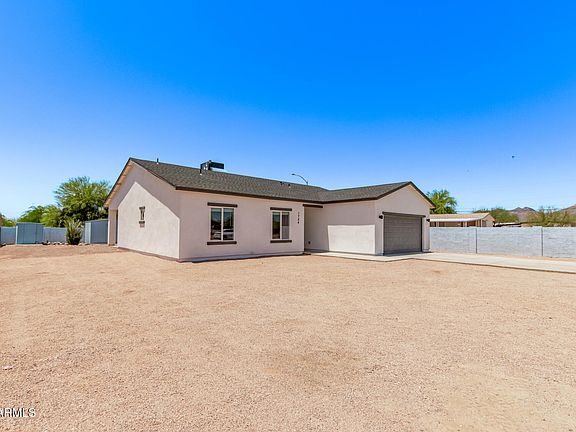 This beautiful home is now ready for buyers. Freshly cleaned, touched-up, and presented in its best light, this move in ready property features 4-bedrooms, 2-baths and a spacious backyard. The home is located in a peaceful neighborhood with low traffic — perfect for morning strolls or evening walks. Enjoy beautiful views of the Pass and the Superstition Mountains. This 2024 home offers a modern open floorplan with tile flooring throughout, high ceilings, and a spacious kitchen featuring an island and brand-new stainless-steel stove and dishwasher. The backyard also includes four sheds fully insulated and with electricity — ideal for storage, workshops, or hobby spaces. No HOA. Great location close to shopping, dining, and freeway.