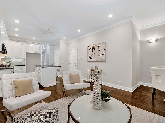 Multiple offers received - highest and best due by 5pm 11/16. A very special new offering. Fall in love with this luxurious updated 2-bedroom, 2 full bath gem, in a classic, picture-perfect, tree-lined, Old Town location. This stunning unit features two private outdoor spaces, pristine newly refinished hardwood flooring throughout, sleek white open concept kitchen with granite counters, stainless appliances and great center island with distinctive pennant lighting and a wonderful pantry. The spacious living/dining area boasts a beautiful fireplace with lovely architectural front windows, showcasing beautiful neighborhood views. Loads of storage includes a large wall of organized closets in spacious primary, ensuite bedroom. Great second bedroom has double closets and a bright hall bath right outside it. Handy side by side in unit washer/dryer. 1 garage parking spot and additional storage included in the price. A highly desirable location, you are steps to unique Old Town shopping, great dining and nightlife on Wells Street, treasured boutique shopping and dining on Armitage. It is convenient to either the brown or the red "L" trains, the Lakefront, and Lincoln Park Zoo. A rare find.