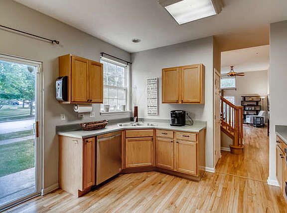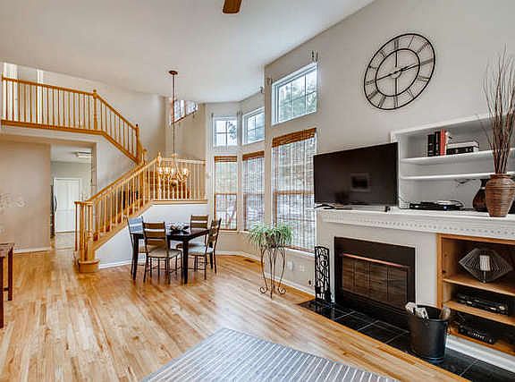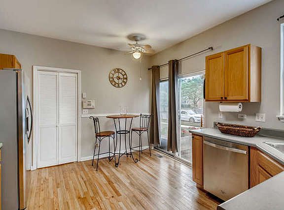Gorgeous, bright 3 bedroom/2 full baths, 2 half baths townhouse with beautiful hardwood floors in the first floor. Open foyer with cathedral ceilings leads to living room with gas fireplace, formal dining room with plenty of natural light and patio off the living room. Large eat-in kitchen has plenty of cabinets, recently replaced Stainless Steel appliances and sliding glass door leading to a second patio area. First floor master bedroom bath has two closets, large bathroom with soaker tub, separate stand up shower, vanity with double bowl sinks and large wall mirror. Second level has two bedrooms (one with a walk in closet) and a bath. There is a huge, high ceiling finished basement(approx. 1100 sq. ft) with carpet, canned lights, wet bar with cabinets, half bath. First floor laundry room. Two car garage has electric door opener.