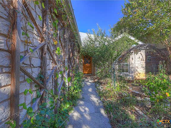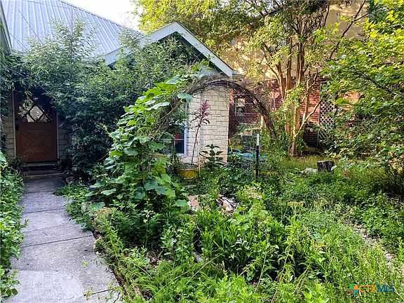 This charming single-family home is nestled in the desirable Oak Knoll neighborhood, close to downtown San Marcos, Crockett Elementary, and The Texas State bus route. The property features beautifully designed front and back gardens with native and adaptive landscaping that will burst into color come spring. Two raised garden beds in the backyard and a raised kitchen garden with a trellis in the front are ready for fall planting. A chicken coop with external nesting boxes makes gathering fresh eggs part of the morning routine. Inside, the home is filled with natural light from abundant windows. The spacious living room features a raised ceiling and a wood-burning fireplace that gives the space an easy, comfortable feel. Custom matching cabinetry adds charm and continuity throughout the home, and the kitchen offers great storage and a clever pantry design, connecting seamlessly to the dining space. The screened-in patio is accessible from both the living room and primary bedroom and is perfect for relaxing or entertaining almost year round. The primary suite is privately situated off the living area, while the secondary bedrooms are down their own hallway off the front entry. Additional highlights include large walk-in closets, excellent storage, a metal roof, gutters, and a French drain system. This is a home that has been thoughtfully cared for and is ready for its next chapter.