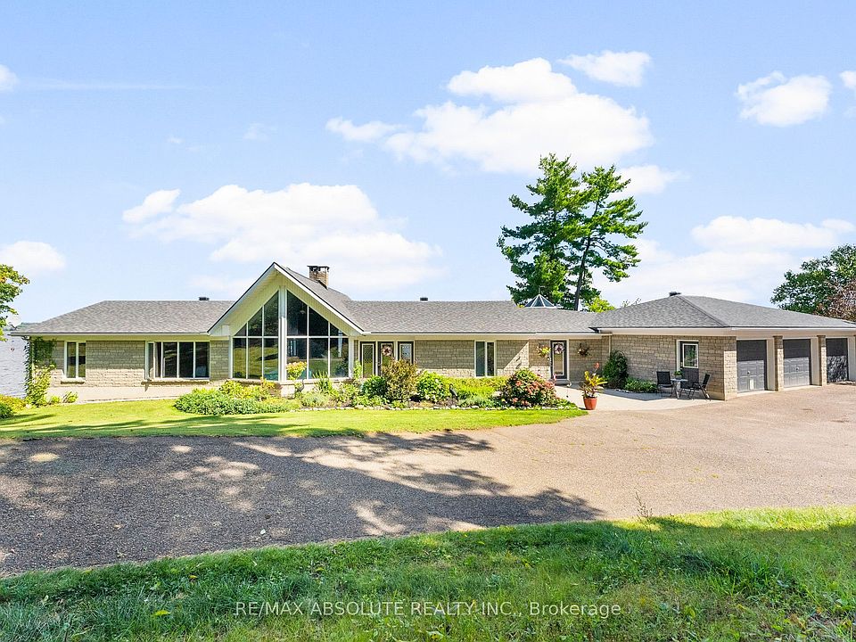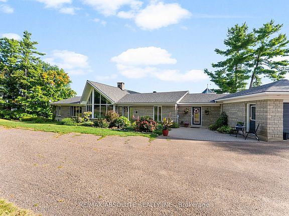 Panoramic views of the Ottawa River from this stunning custom built bungalow!Enjoy waterfront living at it's best with over 700 feet of waterfront on just under 3 acres!The Algonquin Trail is adjacent to the property for hiking, biking & family fun! Designed with open concept living in mind,the heart of the home features a spacious great rm with a 2 sided stone fireplace!Soaring cathedral ceilings framed by walls of windows!The well planned layout offers seamless flow,ideal for entertaining or relaxing while enjoying the views.Bright & spacious kitchen is a foodies delight with a large island,walk in pantry,induction stove(could convert back to gas) & all appliances included.A solarium off the kitchen is a great place to relax & offers a deck for the BBQ.Great room includes dining & living areas creating an ideal space for gathering.Primary bedrm with wall of windows & "more views" boasts a 6 piece ensuite & oversized walk in closet.Second bedrm with 4 piece bath is great for guests.A main floor powder rm, office & second entrance round out the main level.The walk out basement provides additional living space.....a solid wood staircase leads to a beautiful family room!High ceilings & wall of windows create a sun filled living area with "more views"!Cozy up around the wood burning fireplace or enjoy the hockey game with family and friends! 2 more bedrms and 2 more bathrms on this walk out level ensure your family has lot's of room to grow!A large laundry rm & oversized cold rm + storage area round out this level.From the lower level you can access an oversized garage with plenty of room for vehicles, toys & storage plus an attached "2" car garage with extra space in a 3rd bay.Dock & boat lift are included.A concrete retaining wall spans the entire waterfront providing an efficient river wall to protect against erosion.With its exceptional location, thoughtful design, and unmatched scenery, this property is a rare opportunity to enjoy water front living at its finest.