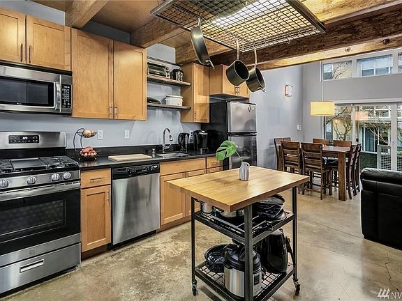Modern lofted townhouse w/ custom metal work, high ceilings and lots of natural light. Great flow & superb condition. Main floor w/ open concept kitchen, living and dining area with 1/2 bath and heated concrete floors. 2nd level has open area perfect for den, office or 3rd BD. The upper level has a spacious master overlooking the secured and quiet courtyard, 2nd BD and a full bath. Located blocks from the heart of up-and-coming White Center. Easy walk to great local businesses like Moonshot coffee, Fresh Flours, Beer Star, the Heart Center yoga studio & neighborhood boxing gym + banks, drug stores & a fantastic produce stand! 5 minute drive to Target, QFC & other retail options. Two blocks from a #120 bus stop to, with frequent service to downtown. House is ready for rent now. Rent is $2,250 per month + flat fee of $167. 65 for utilities (electric, gas, water, sewer & garbage). $1,500 security deposit due at lease signing. Two pets allowed, some breed restrictions apply.