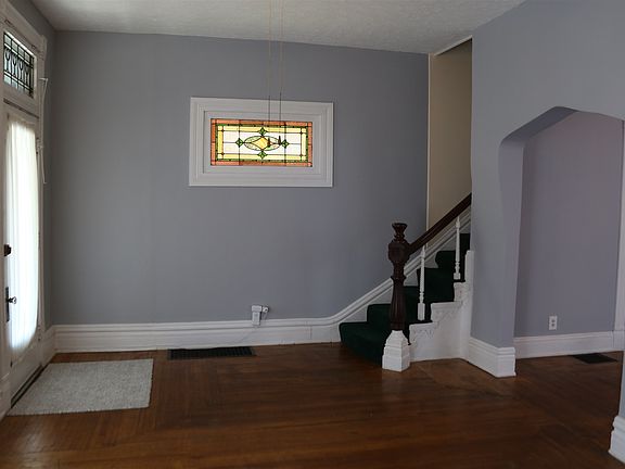 Spacious 5 Bedroom home features off street parking, new concrete patio, large covered porch, Large rooms throughout, 10' ceilings, hardwood floors, Newer AC. 1st floor half bath. Newer roof shingles...