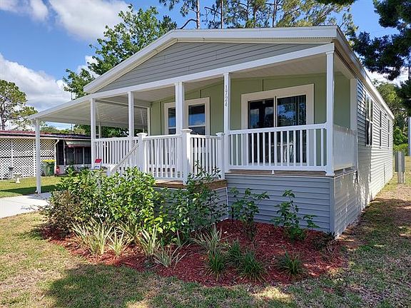 Summer Blowout Event!!!!Amazing, NEW, quality built, Palm Harbor Home with a full covered front deck to enjoy the wonderful Floridaweather! Many nice upgrades. Open floor plan living,kitchen and dining areas make entertaining a snap!Kitchen boasts a roomy feel with plenty of counter space and those great custom Palm Harbor cabinets.Master suite with gigantic walk in closet and attached bath. Separate laundy room as well. Good sized guest roomand guest bath. One simply cannot beat Palm HarborHomes build quality and options. Also Includes kitchenappliances, window blinds, full home set up, driveway,carport, storage shed and landscaping. Home resides ona large prime lot with no homes behind it and just a very short walk to the dog park. This is an Energy Star rated home which will keep utility costslow. Home located in a quiet, well kept, 55+ community,centrally located in Leesburg, FL. Close to shops, restaurants, historic Leesburg and many gorgeouslakes and recreational areas. We are only a short drive from the Villages without the Villages prices. A wonderful place tocall home. Land lease community, current monthly lotrent is $575 and includes water.** pricing and offers are subject to change and maybe withdrawn at any time **