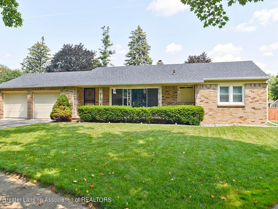 Beautiful, well maintained 2 bedroom, 1 bath ranch is located on a quiet Cul-de-Sac in Country Club Manor Subdivision. From the moment you walk into the front door it feels like home, from the French doors leading to the family room, to the sweet built-ins that add so much character & charm. This home is light and airy and features updated kitchen with beautiful cabinetry. All appliances remain with the property. The living room is front facing with a large picture window looking out to the fullfront porch that is waiting for you to sit and enjoy the evening air. Large great room that features a cathedral ceiling with plenty of room for entertaining. Gleaming oak floors in both bedrooms. Partially finished basement includes family room with a woodburning fireplace, large storage room and a laundry room with a second commode. Park like yard is fenced with a beautiful courtyard like patio and a small garden shed for all your tools. This home will not last long!